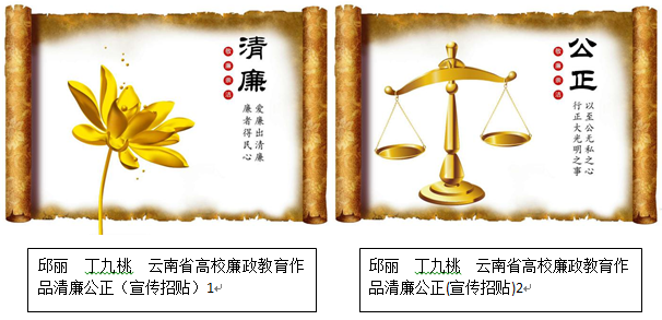 为积极培育和践行社会主义核心价值观,大力繁荣校园文化,培育大学精神,进一步推进云南省高校廉政文化建设和廉洁教育工作,近日教育学院积极组织广泛师生踊跃参与廉政文化作品征集活动,现将优秀作品展示如下。